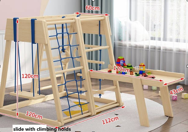 Opret en Mini Adventure Park lige i dit hjem med vores børns træklatringramme! 🛝 Perfekt til småbørn og små børn, dette legeset inkluderer et lysbillede, sving og klatrevæg, der tilbyder timer med aktiv sjov.